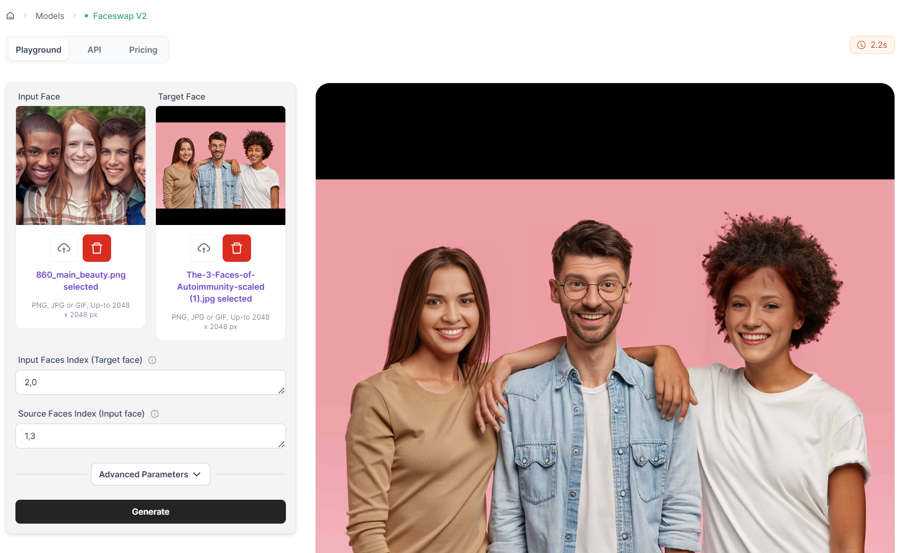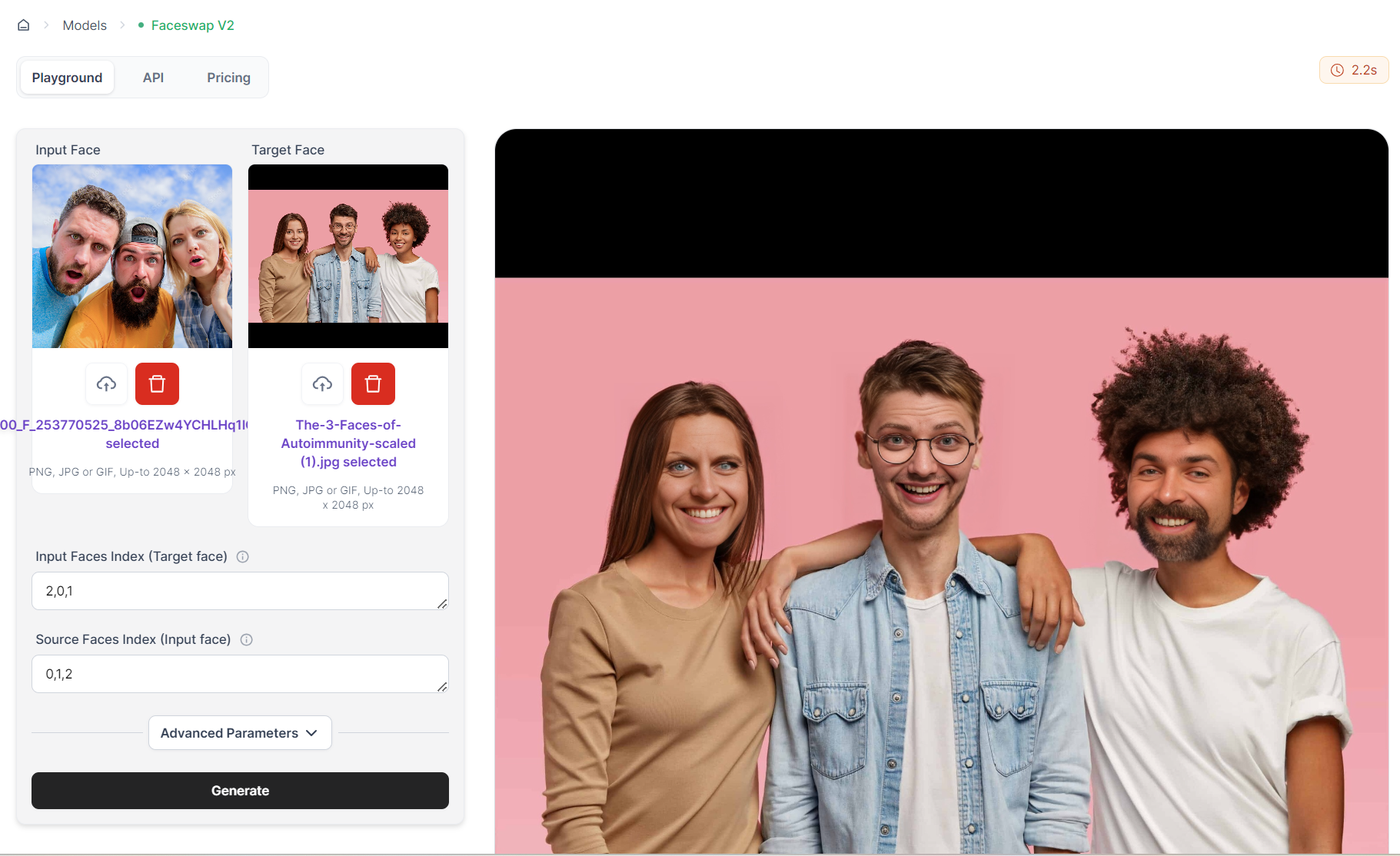 Multi Face Swap in photos & videos is a fun and easy way to see how different faces would look in different contexts or bring humor to group photos. Here’s a detailed guide on how to use the model, including the use of face indexes.