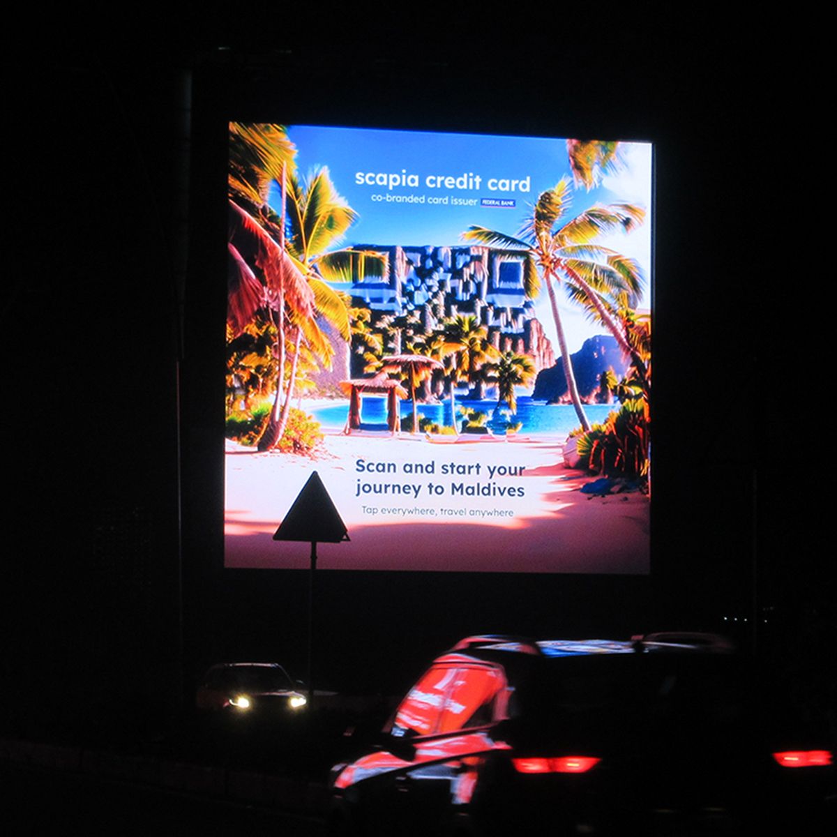 2. Scapia: For Scapia's inaugural outdoor campaign, they took an innovative approach to inspire wanderlust. Instead of just regular billboards, Scapia introduced QR codes set against breathtaking travel destinations, compelling viewers to not only dream of their next adventure but also to consider getting the Scapia card to make it happen. These captivating billboards, strategically placed in various cities and bustling airports, serve as both a call to travel and a nudge towards their product.