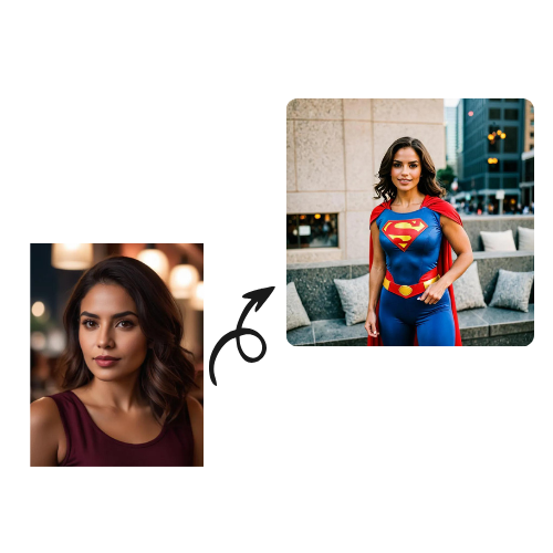 - Prompt: Provide a text prompt that describes the final output you envision. For example, if you want the person in the image to appear as if they’re wearing a Wonder Woman costume, your prompt could be “Photo of a woman wearing a Wonder Woman costume”.