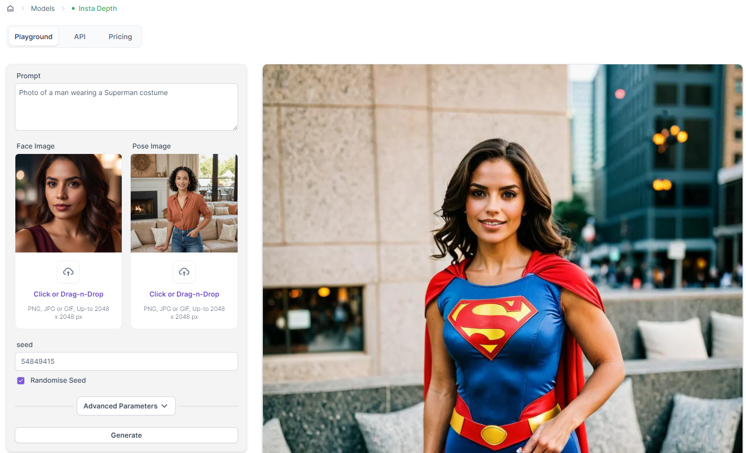 Under the hood, Insta Depth is a combination of Instant ID and ControlNet Depth models.