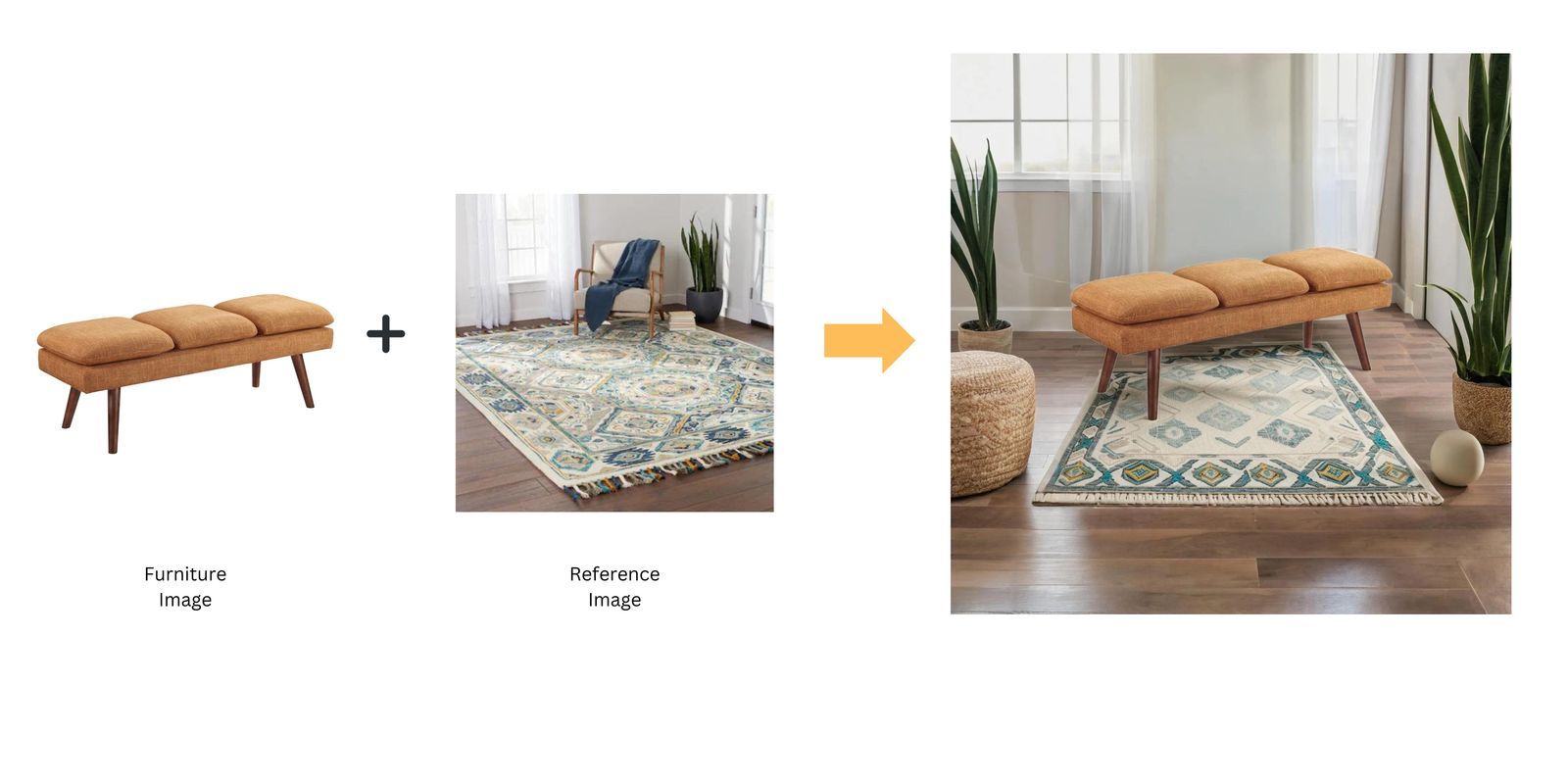 - IP Adapter allows to use an existing image as a reference, and a text prompt to specify the desired background. For example, if you have a picture of a bench and you want to change the background to a living room with the help of a reference image (or IP image) of a living room, you could use a text prompt like “living room”. The IP Adapter then guides the Stable Diffusion Inpainting model to replace the background of the image in a way that matches the reference image. So, in our example, the bench in the room would now appear to be in a living room just like in the reference image.