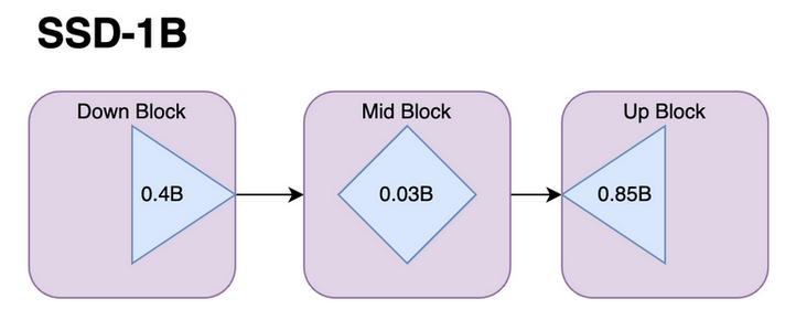 The SSD-1B model is configured with 1.3 billion parameters, a strategic reduction from the base SDXL model. To achieve a more streamlined size, the architecture was made by removing specific layers while meticulously preserving image quality. Notably, the removal of transformer blocks within the Attention Layers proved to have no significant impact on quality.
