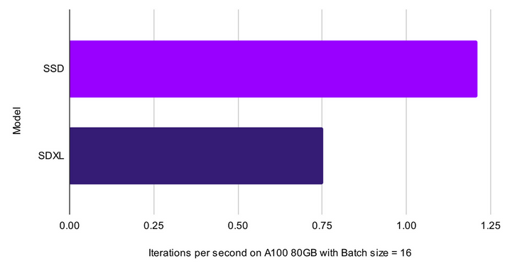 The SSD-1B model brings an impressive 60% boost in both inference and fine-tuning speeds compared to the SDXL Model. Even at a single-unit batch size, the SSD-1B stands out with an impressive 16.02 images per second (It/s), showcasing a remarkable 56% speed increase over the SDXL's 10.26 It/s. This trend of improved performance persists as we scale up batch sizes.
