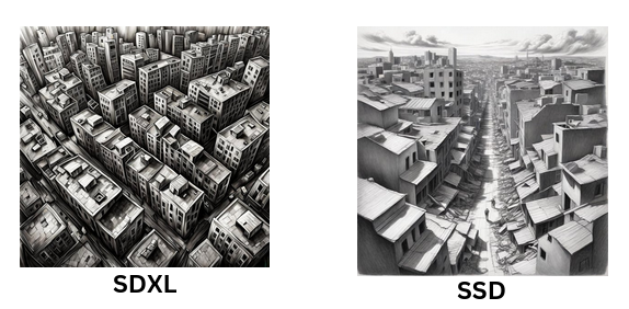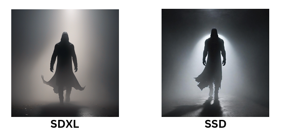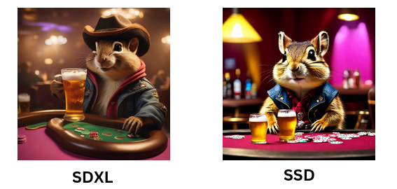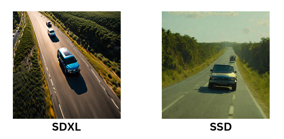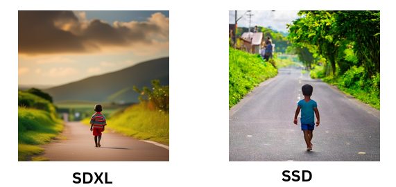 Here's the interesting part: when we compare the images generated by the two models, even though we clearly stated our intention, SDXL adds a blurry effect to the image, while SSD sticks to our instructions.