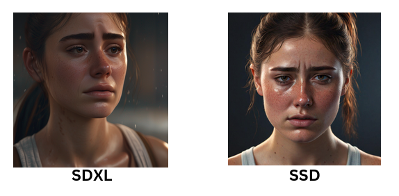 SDXL lacks in this department. While it produces high-quality images, finer details like hair or facial features aren't up to the mark when compared with SSD.