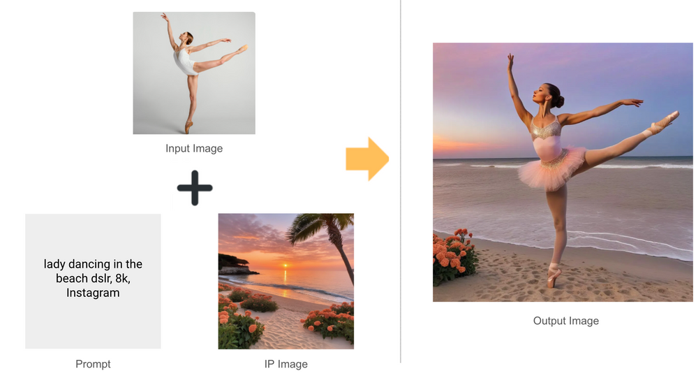 Unlike other models, IP Adapter XL models can use both image prompts and text prompts. The main idea is that the IP adapter processes both the image prompt (called IP image) and the text prompt, combining features from both to create a changed image.