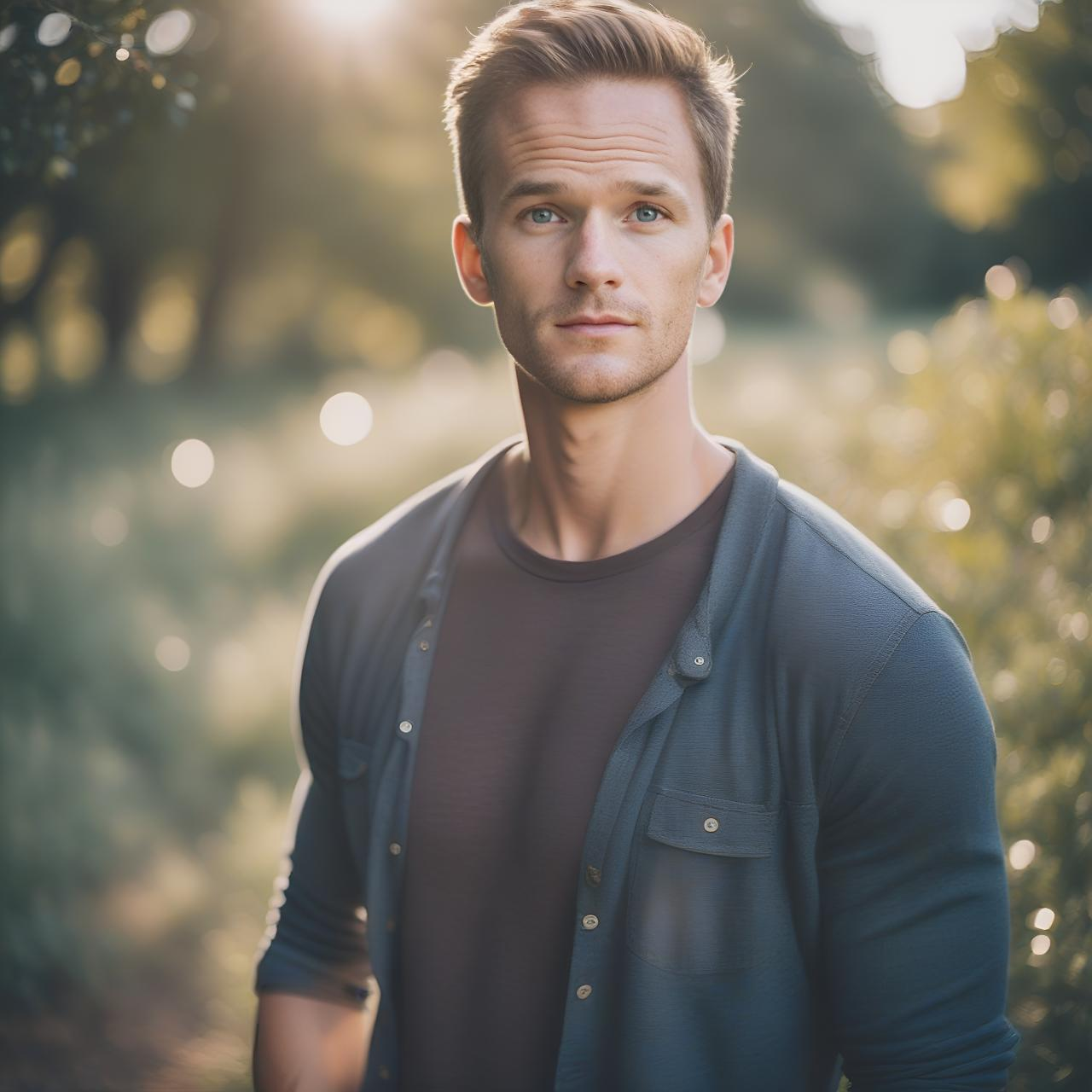 Prompt: "Studio quality Instagram portrait photo of man, smiling, outdoors, 35mm photograph, film, bokeh, 4k, highly detailed"