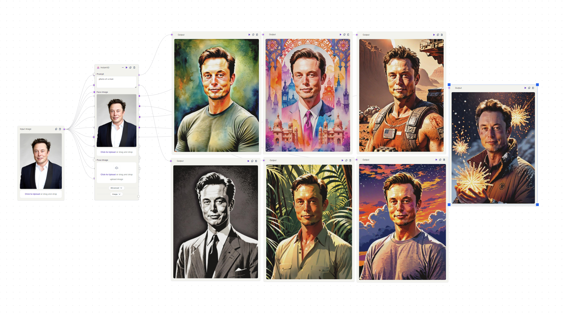 On Segmind, InstantID offers 28 unique styles. Feel free to try different styles that meet your taste and generate images. Here are examples of a few these styles.