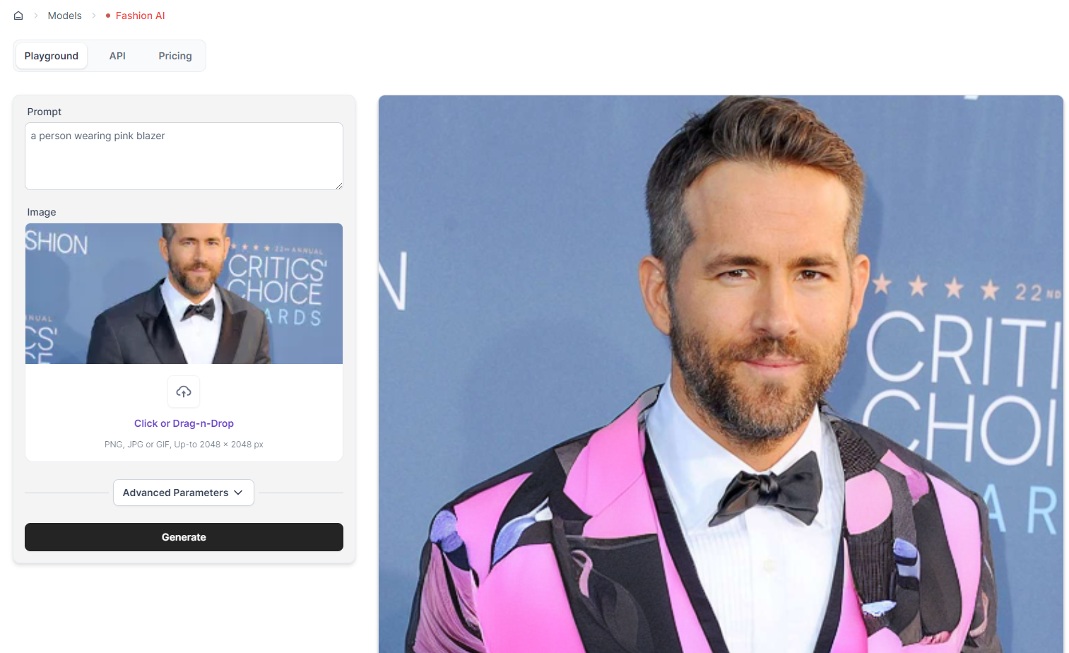 Important Note: Mismatches between the clothing type in the image and your chosen category can lead to poor results. For best outcomes, make sure the clothing type matches what's in the picture.