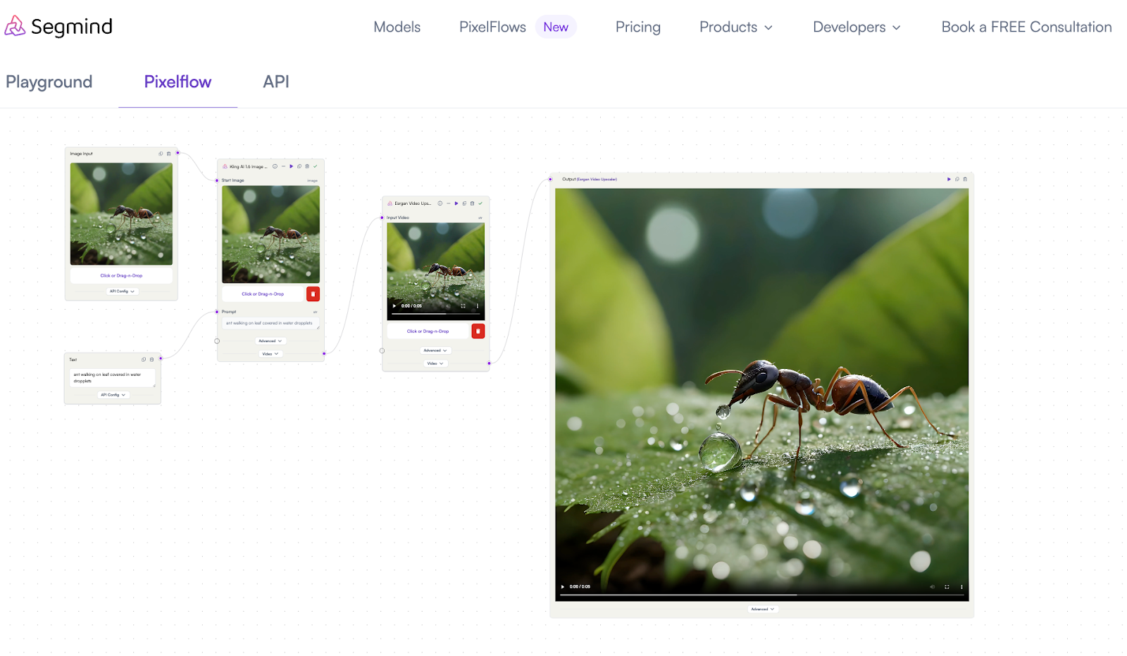 - Utilize Visual Workflows: Platforms like Segmind PixelFlow allow you to drag-and-drop video steps, tweak settings, and preview results in real time.