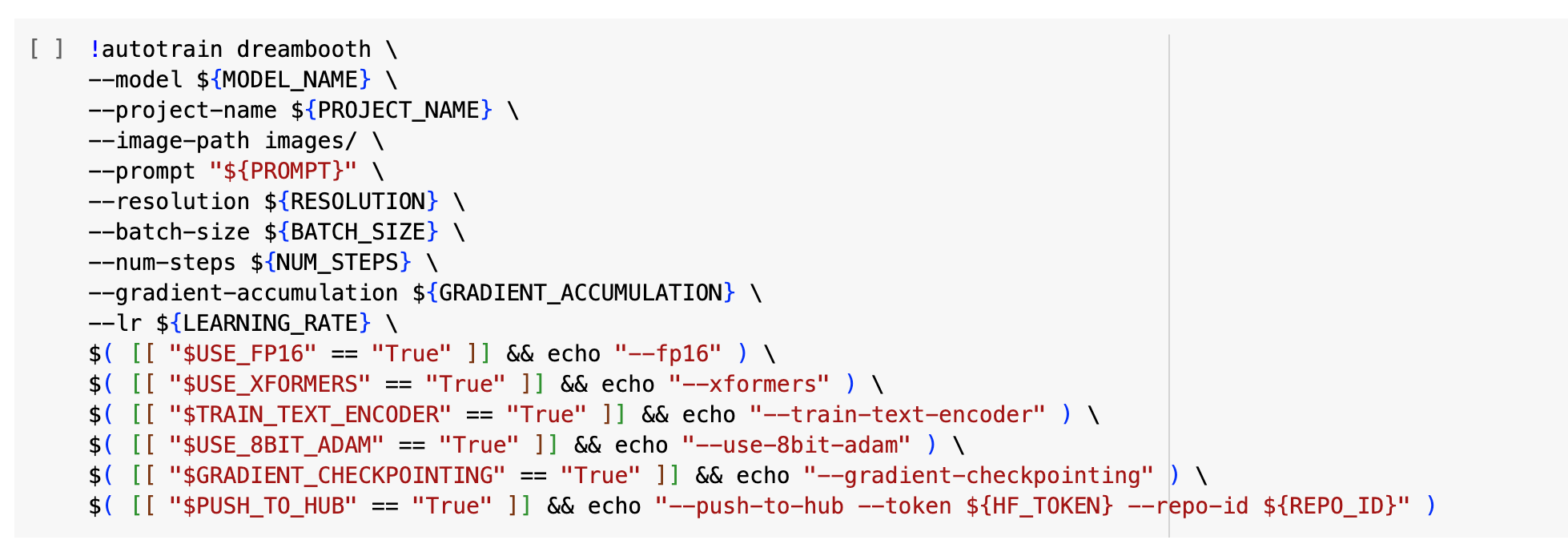 We will be using Autotrain library for Dreambooth, it makes it easy to finetune models with just a single line of code.