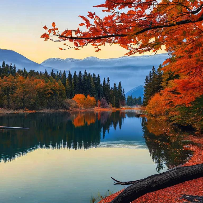 Example: "...dominated by rich autumn hues, particularly vibrant oranges, and yellows..."