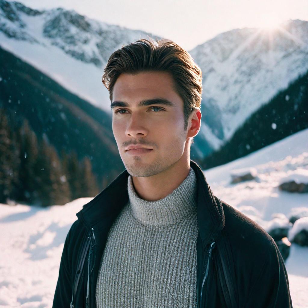 Let us take one more image of a handsome guy standing in snowy mountains , we can add more details to see the kind of effect it has in our final result