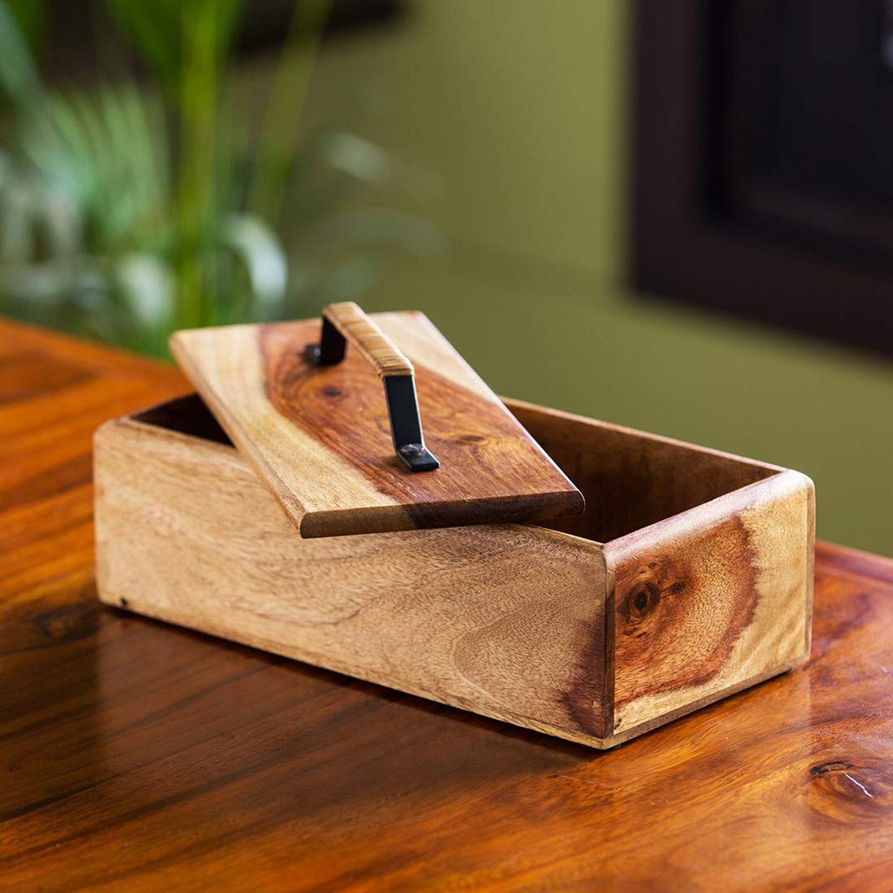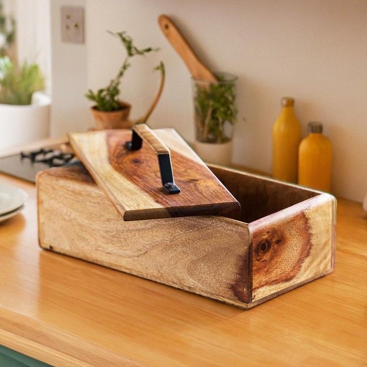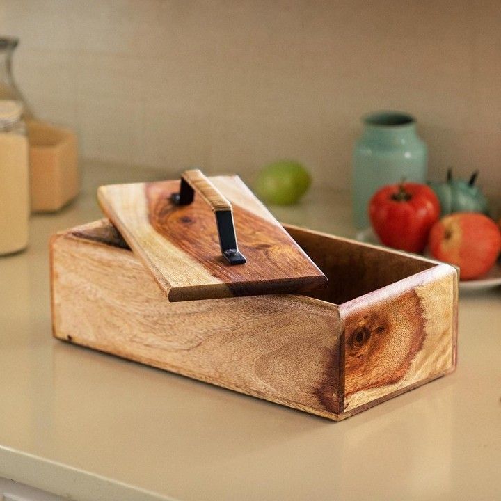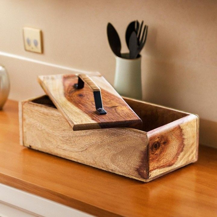 AI-generated backgrounds can portray storage boxes in various settings, highlighting their versatility. For instance, a wooden storage bin can be showcased on a dressing table, kitchen counter, and so on. These images depict storage boxes in scenarios that align with their organizational or storage needs.