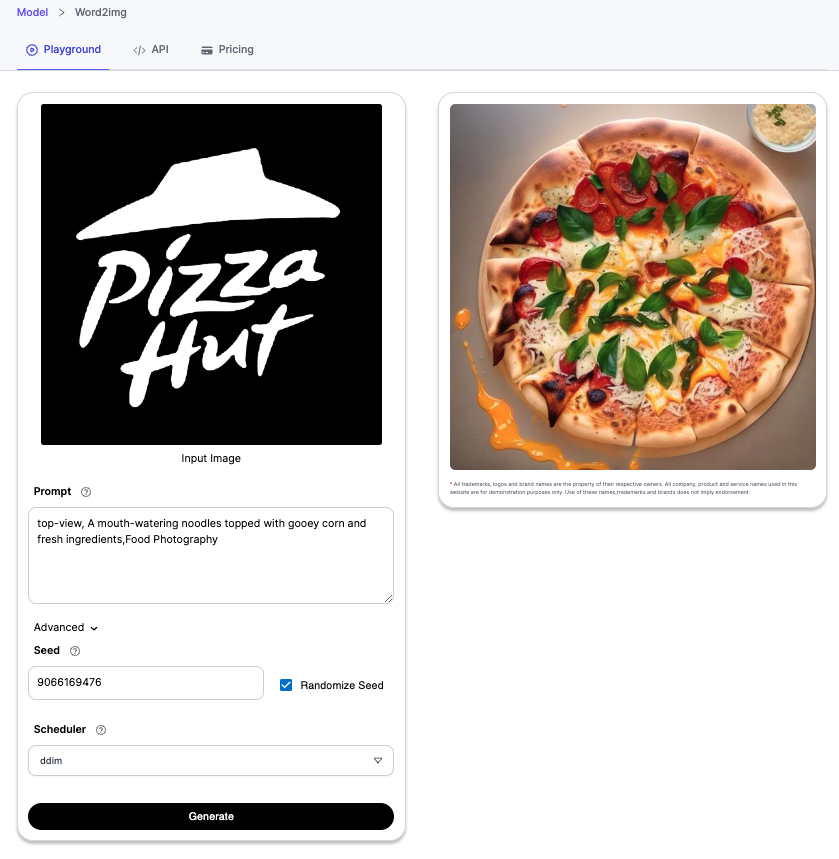 This innovative AI-powered tool uses a technique called "text-to-image synthesis" to transform words and descriptions into visually stunning art pieces. Simply upload any image of consisting of a word, provide a simple prompt of the expected output image, and the model will generate a unique and original artwork that reflects your inspiration with the word embedded within the image.