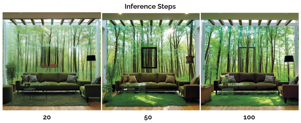 Opting for more denoising steps also comes at the cost of slower and more expensive inference. While a larger number of denoising steps improves output quality, it's crucial to find a balance that meets specific needs.