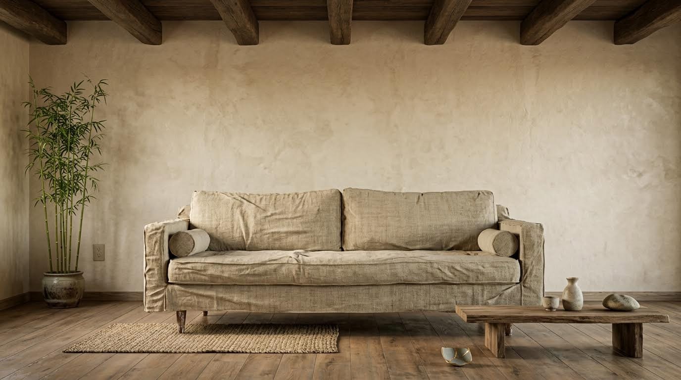 Interior redesign via i2i is a real workflow for architects and interior designers showing clients alternative versions of a space. The test: take a contemporary minimalist living room and redesign it in Japanese wabi-sabi style, keeping the spatial layout while changing everything about the materials.