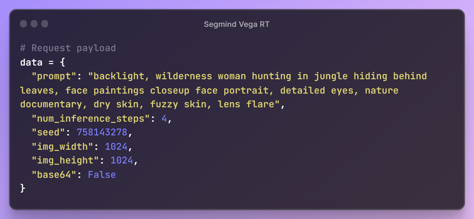 Segmind offers serverless API to leverage its models. Obtain your unique API key from the Segmind console for integration into various workflows using languages such as Bash, Python, and JavaScript. To explore the docs, head over to Segmind Vega RT API.