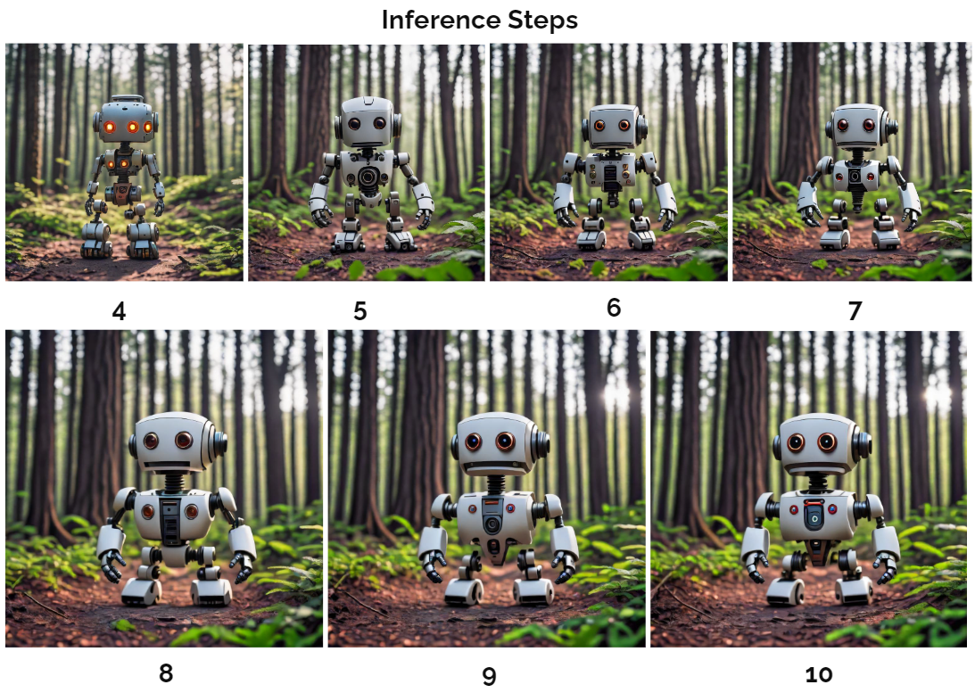 Opting for more denoising steps also comes at the cost of slower and more expensive inference. While a larger number of denoising steps improves output quality, it's crucial to find a balance that meets specific needs.