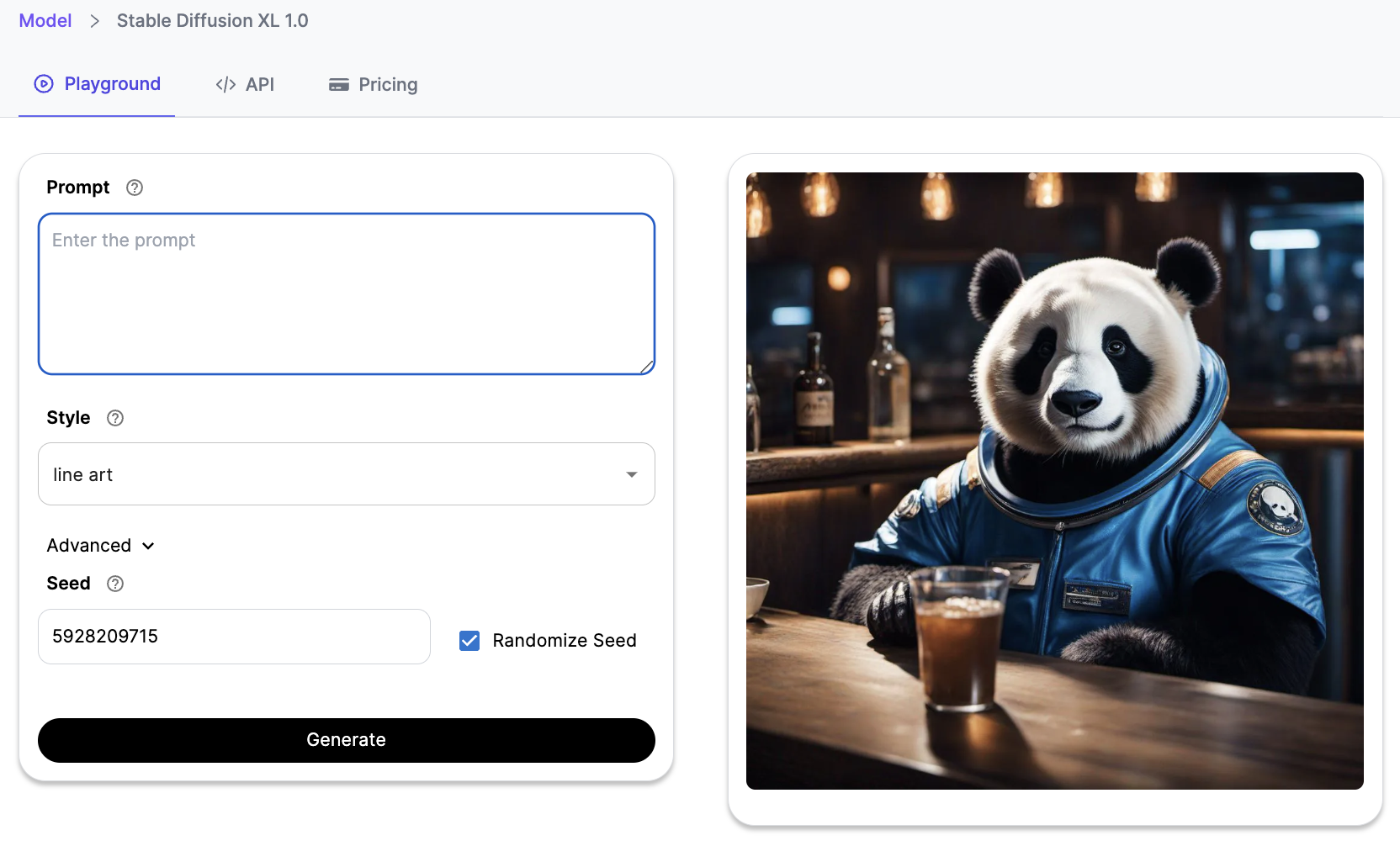 Firstly, we'll need a sketch. We can either use an existing sketch in PNG/JPEG format and send it as an input image on Segmind's ControlNet Depth model, or the sketch itself can be generated using SDXL 1.0's "line art" style. Simply change the style from "base" to "line art" and describe the dress style.