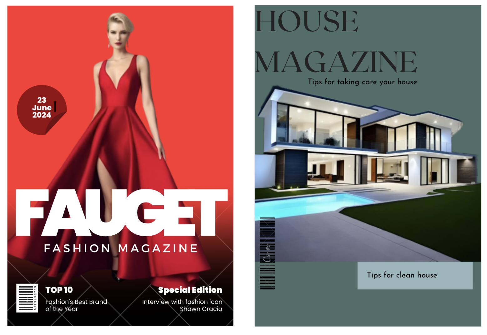 2. Magazine cover design- The generations can be used in the design of magazine covers and illustrations. The background of the image can be removed using the Background removal model and the output image which is just the model in the dress can be used on a magazine cover.