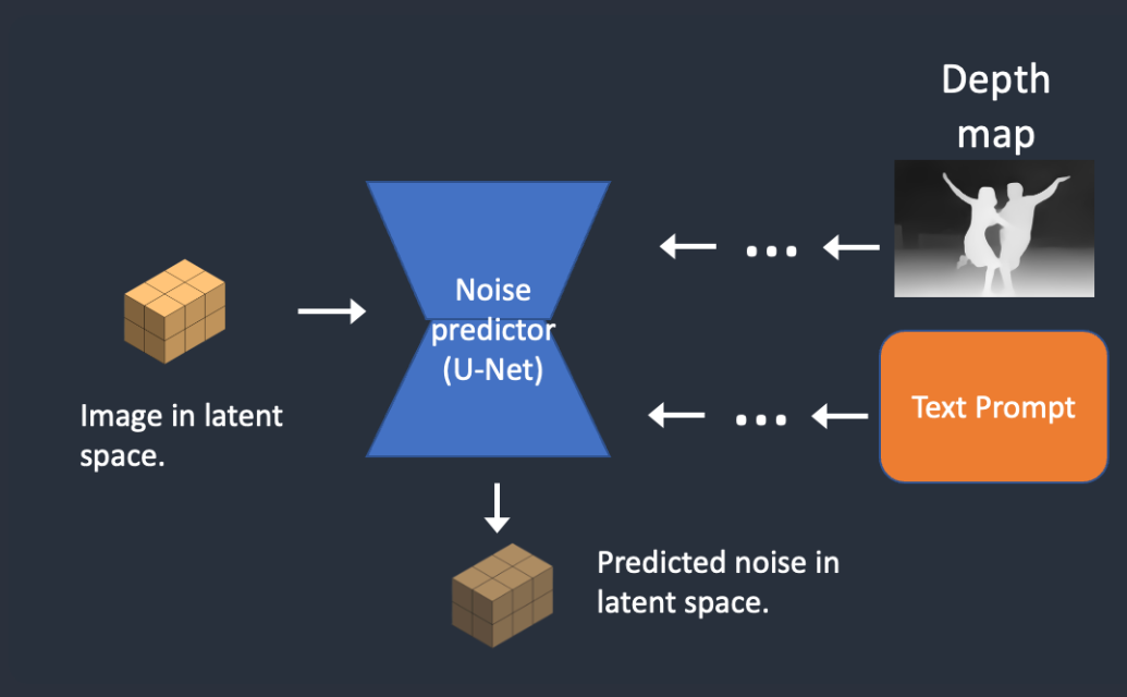 - In the depth-to-image scenario, it works a bit differently. It still needs a picture and a prompt, but it adds a depth map. This map is estimated using MIDaS, an AI model for monocular depth perception developed in 2019. This depth map is like a guide that helps the model understand the 3D layout of the scene.