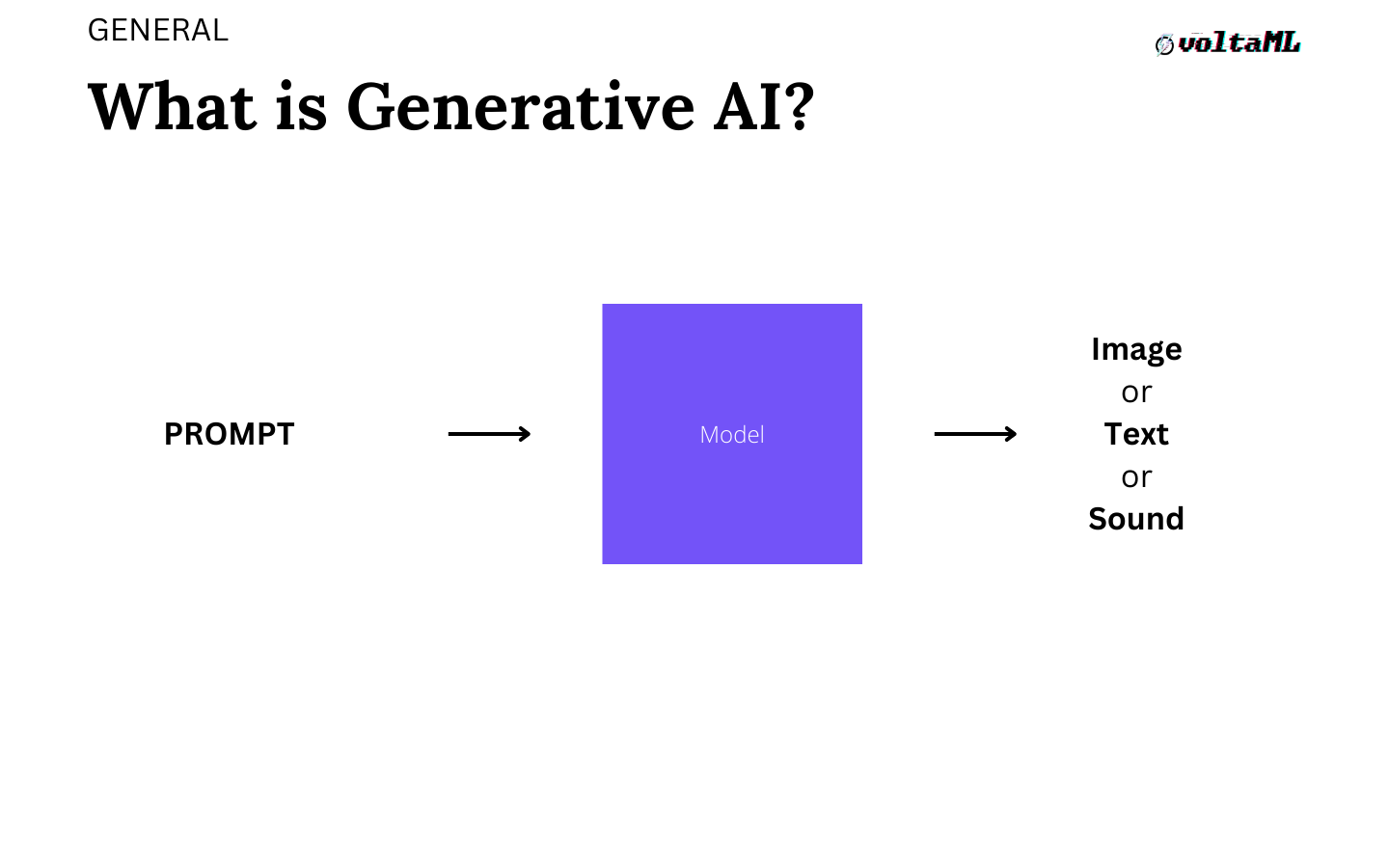A person sends in a prompt, which is a sentence asking to do something and the model takes that in and creates an image, text, or sound.