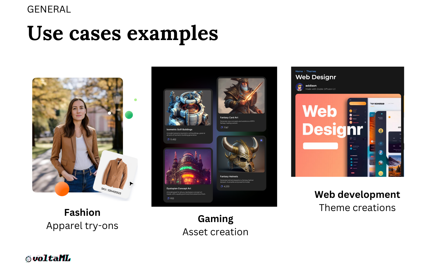 Gaming: we also have use cases in asset creation for gaming. We have seen a few companies use stable diffusion or slightly modified versions of stable diffusion to create assets. It would have taken a few weeks if not months for an artist to create these type of assets.
