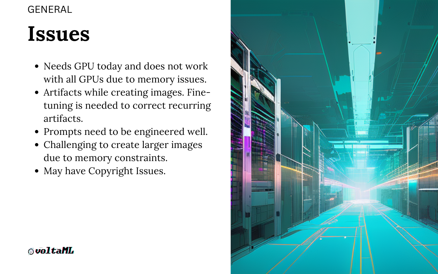 Copyright issues: Finally, images that Stable Diffusion generates might have copyright issues. You'll need to be careful. Let's say you ask for an image of a car to be used on your blog, it might generate an image with a car with Ford's logo or Tesla's logo on it. You might want to double-check the image before using it commercially.