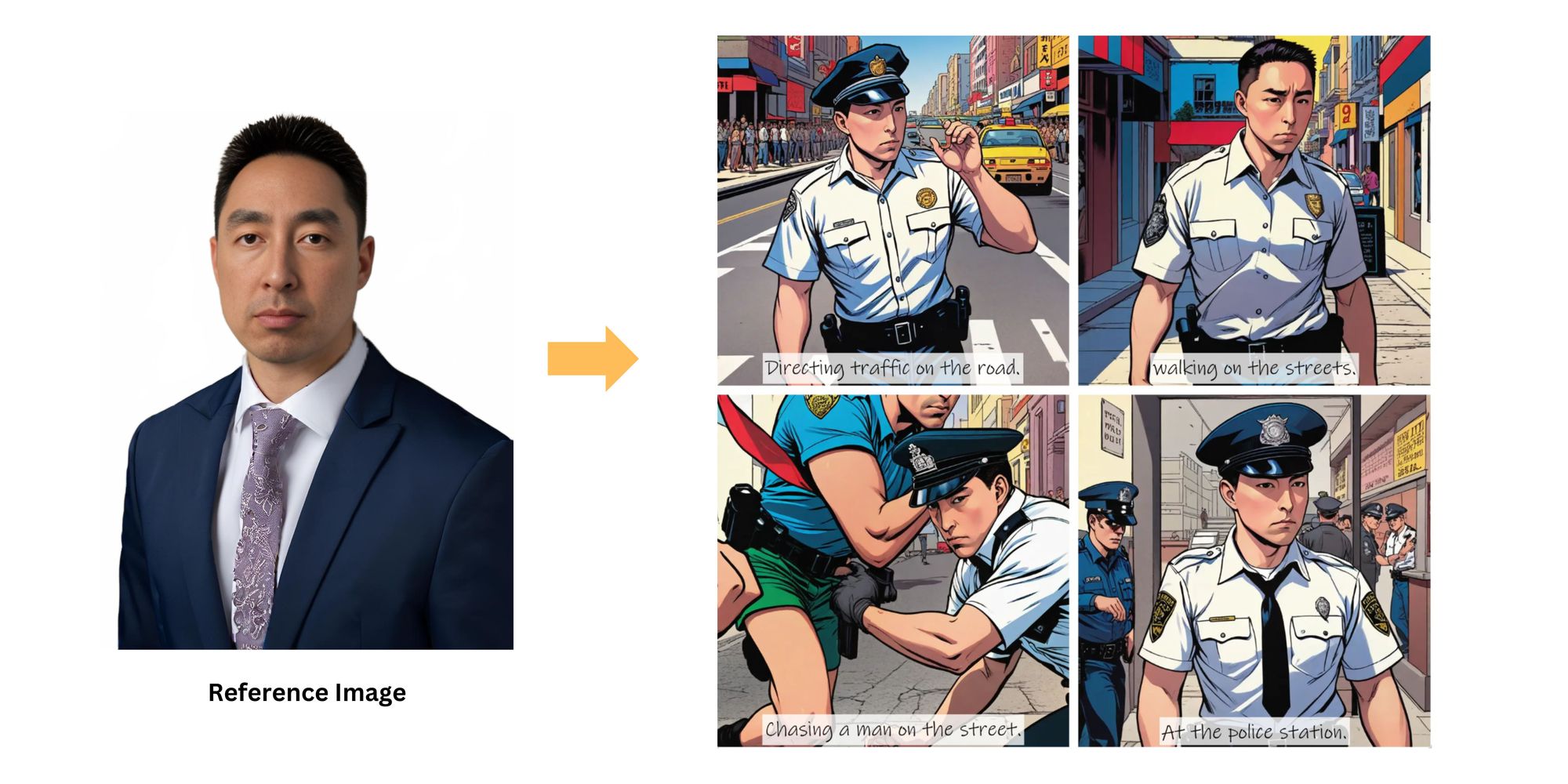 You can use a reference image for your character. There are a few things you should consider when using a reference image, other than that everything remains same as generating comic strip with just text prompt.