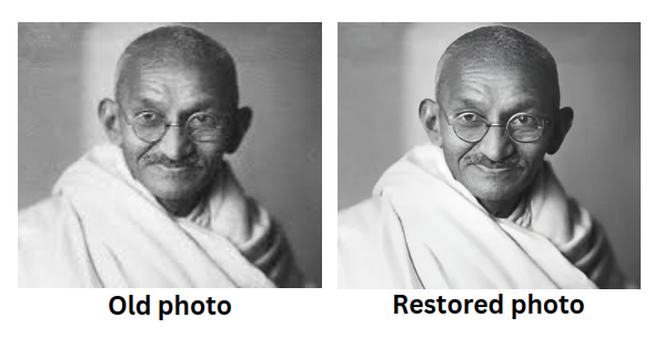 Let us take the old photograph of the Indian freedom fighter Mahatma Gandhi, The image characterized by a dull and faded appearance, lacks the vibrancy and depth that would do justice to the historical significance of the iconic figure.