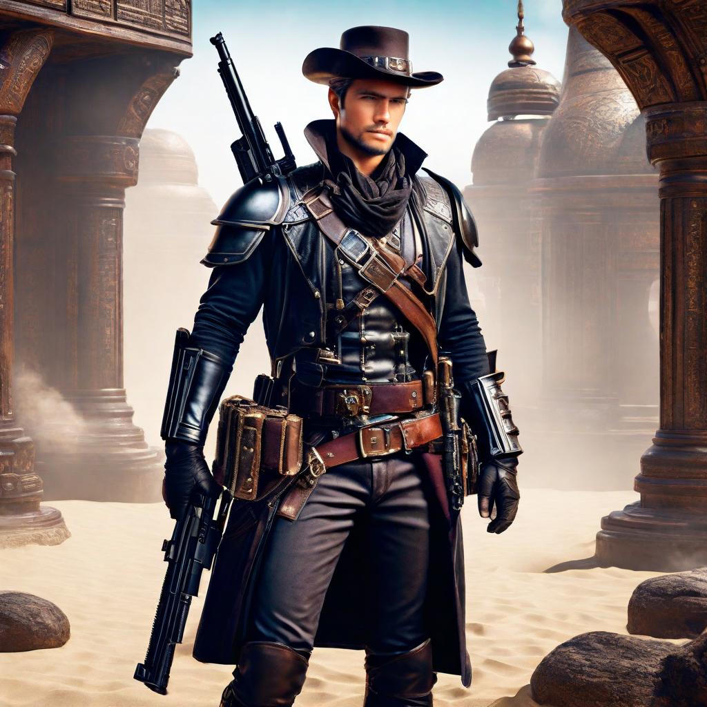 Take this example where we would like to generate the image of a handsome male bounty hunter dressed in the Victorian era style.